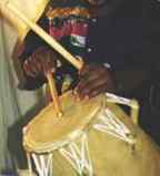 In terms of a performance technique, the duration of resonance of a tone is normally controlled by damping the membrane at the periphery with a light but firm touch of the weak hand fingers. This technique is of prime importance in the articulation of the structure of a drum music or vugbe. It provides the means of indicating the basic motives, phrases and periods out of which the drum music is made.