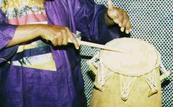 In terms of a performance technique, the duration of resonance of a tone is normally controlled by damping the membrane at the periphery with a light but firm touch of the weak hand fingers. This technique is of prime importance in the articulation of the structure of a drum music or vugbe. It provides the means of indicating the basic motives, phrases and periods out of which the drum music is made.