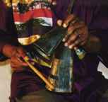 Two types of stick techniques are use in the art of playing gankogui, a bounced stick technique and a pressed stick technique. A bounced stick technique allows the stick to rebound after striking gankogui, and a pressed stick technique releases a partial vibration by pressing the stick firmly on gankogui to prevent it from bouncing after the stroke is delivered.
